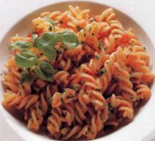 Tritate l'aglio, il prezzemolo e metteteli in una padella con olio, peperoncino, i pomodori a pezzi e lasciate insaporire per qualche minuto. Cuocete la pasta in acqua salata, scolatela e conditela con il sughetto appena preparato; prima di servire spolverate con prezzemolo tritato e basilico.